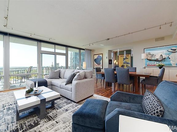 This stunning two-bedroom, two-and-a-half-bath condominium offers a rare blend of modern design, smart-home convenience, and breathtaking Forest Park views. With floor-to-ceiling windows and two private decks, natural light fills every room, highlighting the updated lighting throughout. The open-concept living and dining area features remote-controlled roller shades, a low-voltage lighting system, a striking five-pendant chandelier, and a 76-inch flush-mount SimpliFire fireplace with remote. Flush-mount rear speakers and a remote-controlled AV system, housed neatly in a closet, enhance entertainment options. Climate control is effortless with Nest thermostats managing two HVAC systems. The built-in office provides custom cabinetry, bookcases with USB charging ports, and accent uplighting above the shelving.