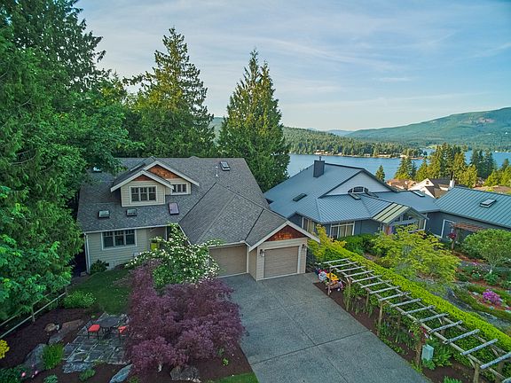Stunning Lake Whatcom view home situated on a private lot in Geneva. Enjoy the serenity of the trees and the view on a non-through street. Unique architectural features in this custom built home. Recently renovated kitchen includes new Bosch appliances. Master bedroom boasts a great lake view, private balcony, 2 walk-in closets, & a fabulous en suite. Custom solid wood doors, beautiful tile flooring, &cathedral vaulted ceilings. Listen to the babbling creek from the large private deck!