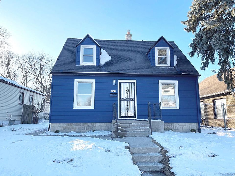 Cute and cozy describes this charming cape code. With fresh paint inside and out this home is sure to please. Updated kitchen and bathroom. The upper bedroom has a landing or office space. Partially fenced backyard with detached 1 car garage. Call to take a look today! Note: Room sizes are estimated. Listing info not verified. This property is being sold in AS-IS condition.