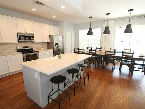 - Interior Features: High Ceiling(s), Master Bedroom Downstairs, Walk-In Closet(s), Window Treatments, Solid Surface Counters, Solid Wood Cabinets, Eating Space In Kitchen, Kitchen/Family Room Combo, Stone Counters, Thermostat
