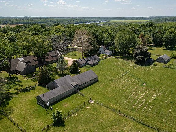 This is one of the most nostalgic farms in Illinois. Sitting just outside of Grand Detour this farm has rolling ag, fenced pasture, multiple barns, a main house and a guest house, timber, and river frontage giving it a little bit of everything. This farm was a part of the historical Babson Arabian Horse farm, one of the oldest continuous Arabian breeding farms in America. The estate's entrance greets you with two stone columns and Pulpit Rock Farm sign. As you make your way up the long driveway, you will enjoy amazing views of the pasture and ag land. Rounding the corner you are introduced to the main house with its beautiful front porch. Part of the house was the original cabin of Governor Lowden that was moved to the property. This cabin has been added onto since then. Entering the home, you will notice the remodeled kitchen with an eat-in area and bar-style seating, as well as tons of cabinet space, a double oven, and a commercial stove. The formal dining room flows openly into the family room with a wood fireplace and built-in bookshelves. The first floor has a full bathroom and laundry room. Upstairs are 4 bedrooms, one is used as a walk-in closet, and a full bathroom. The guest house is a well-maintained ranch home with an open flow from the galley kitchen into the dining area and large family room. This house has two good sized bedrooms. Off of the houses, you have the 3-car garage and office area. The office has a quaint study/library, wood burning stove with limestone chimney and a kitchen. This building has a full bathroom and sleeping loft. The centerpiece show barn (50x150) is beautiful with cypress wood siding, cathedral-like ceilings and gorgeous doors. This barn has 16 stalls. Additionally, there are guest quarters attached with a kitchen, bathroom, high ceilings and large stone fireplace. It would not take much to bring this unused room back to its glory. The 50x100 mare barn provides 10 stalls and the 34x90 foal barn also has 10 stalls. In addition, there is an 18x62 lean-to a 40x90 loafing shed and two more additional sheds. Around these barns, there are different fenced pastures, paddocks and riding areas. This property has 68 acres of sharecropped farm ground and 62 acres of timber and trails with some nice ravines that run towards the Rock River, which shares its frontage and unique stone bluffs with this farm for over 1/2 a mile. There is excellent deer and turkey hunting on this farm. This property has so many potential uses and is one of a kind. Be sure to give the listing agent a call to schedule your private showing.