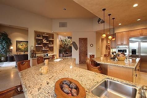 Located in the prestigious Rancho Pointe Estates, this former model is a designers showcase! Decorated by Gina McGuire this home stands out among them all, offering spectacular mountain vistas, showcased by cascading waterfalls, two lakes, and two fairways of the 11th and 12th fairway of the Pate. This Montana 3 features 3BD + Office, 4.5BA and includes a detached casita. Sophisticated built-in furniture to match every room, a gourmet kitchen with granite slab counters, custom backsplash, 24 x 24 travertine flooring, designer ceiling fans and custom light fixtures, electric blinds and surround sound system. The designer details don't stop here continuing out to the back yard with extended patio areas, built-in BBQ, fireplace, firepit, and infinity salt water pool & spa. Every element of design has been skillfully crafted to make this a dream escape. Offered Furnished. Brokered And Advertised By: Windermere Real Estate Listing Agent: Janine L. Stevens