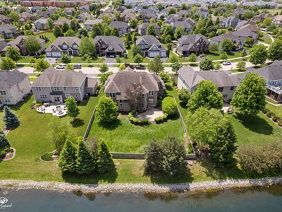Welcome to this custom-built McCue home, perfectly situated on a picturesque pond lot in the highly desirable Autumn Gate at Southbury. Combining timeless elegance with modern comforts, this home offers over 3,460 square feet of beautifully finished living space above grade, plus an additional 1,827 square feet in a professionally finished basement. From the moment you arrive, the home captivates with its impeccable curb appeal and serene natural backdrop. Step through the front door and into an inviting interior that seamlessly blends sophistication and warmth. Rich hardwood floors flow throughout the foyer into the kitchen, complemented by custom millwork, designer light fixtures, and thoughtfully curated finishes. The heart of the home is the gourmet kitchen, a culinary masterpiece featuring top-of-the-line stainless steel appliances, granite countertops, a large center island, and ample cabinetry. Whether preparing a casual family meal or hosting a dinner party, this space delivers both function and flair. Adjacent to the kitchen, the expansive two-story family room impresses with a dramatic floor-to-ceiling stone fireplace and a wall of windows that frame peaceful views of the pond beyond. Formal living and dining rooms provide refined spaces for entertaining, while a private first-floor den offers the ideal setting for a home office or library. The main level also includes a well-appointed powder room and a custom mudroom equipped with built-in lockers, a utility sink, and a top-quality washer and dryer-perfect for streamlining everyday routines. Upstairs, the home continues to impress with four generously sized bedrooms and three full bathrooms. The luxurious master suite is a true retreat, complete with a spacious sitting area, an oversized walk-in closet, and a spa-inspired en suite bathroom. Here, you'll find a lavish whirlpool tub, a walk-in shower with rain head and body sprays, dual vanities, and a private water closet. One of the secondary bedrooms enjoys its own private bathroom, while the remaining two share a hall bath with dual sink vanity. The deep-pour finished basement offers an extraordinary extension of the home's living space. This level includes a sprawling media room with custom built-ins, a sleek wet bar that invites entertaining, a separate bedroom, a fitness room, and a full bathroom. With the same level of quality and care as the upper floors, this lower level is perfect for hosting guests, pursuing hobbies, or simply relaxing. Outdoor living is equally impressive. A custom-designed paver patio provides the ideal space for dining, enjoying quiet mornings with a cup of coffee, or cocktail in the evening. The professionally landscaped fenced-in yard is kept pristine with an in-ground irrigation system, while the three-car garage-with its durable epoxy-coated floor-offers ample room for vehicles and storage. Located within a vibrant community known for its resort-style amenities, including a clubhouse, pool, and walking trails, this extraordinary home offers an unmatched blend of luxury, comfort, and convenience. Don't miss the opportunity to make it yours.