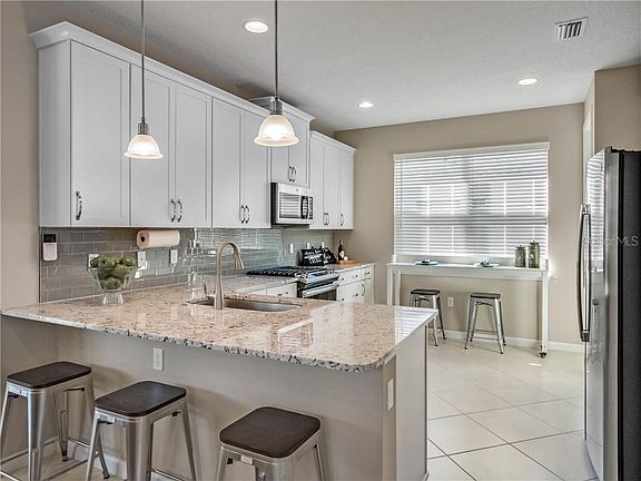 WHY WAIT TO BUILD!! MAKE VICTORIA HILLS YOUR HOME TODAY! KOLTER AZALEA model, built in 2019, offers beautiful finishes with $24,000 in UPGRADES! Like new Kolter home features 2 bedrooms PLUS DEN/OFFICE, 2 baths, and an open floor plan. This light and bright home is stunning and loaded with upgraded features. Den provides FLEXIBLE living/office or guest space. Entertain in style in your GOURMET KITCHEN with level 4 granite counters, tile back splash, huge breakfast bar with pendant lighting, natural gas stove, stainless steel appliances and 42" white cabinets with satin nickel handles. ALL APPLIANCES STAY. Large master suite offers HIS AND HERS WALK-IN CLOSETS, HIS AND HERS separate vanities and walk-in shower with upgraded tile package and seamless shower enclosure. ADDITIONAL UPGRADES INCLUDED: BLIND PACKAGE, TRANSFERRABLE TERMITE BOND AND SIMPLISAFE WIRELESS HOME SECURITY SYSTEM W/ HD CAMERAS. Close to all SHOPPING, MEDICAL FACILITIES, and TRANSPORTATION ~ This AMENITY RICH Community provides H.D.CABLE TV, HI-SPEED INTERNET, RESORT STYLE HEATED POOLS, FITNESS CENTERS, LIGHTED TENNIS & PICKLEBALL COURTS, RECLAIMED WATER FOR LAWN! Medical, Publix, Starbucks, and Shopping 2 miles away, 1mile to I-4. Make your appointment for a private showing today! This property may be under audio and video surveillance.