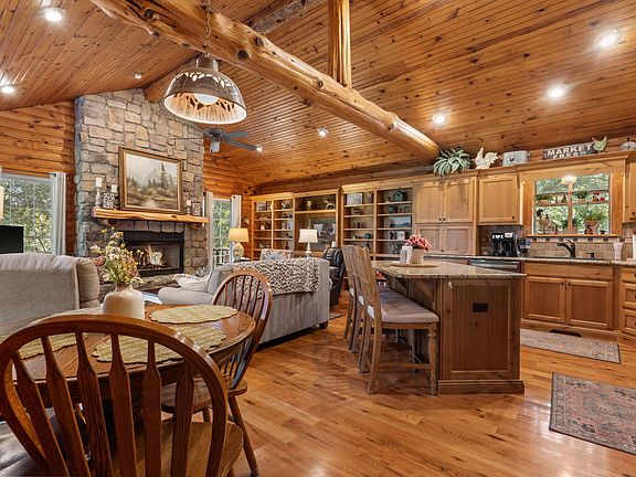 Discover your sanctuary nestled in nature at this charming 2-bedroom, 2-bathroom home, perfect for lake enthusiasts and those who cherish privacy. This well-constructed tongue and groove white Pine cabin is ensconced in a peaceful wooded area inviting a daily audience of local wildlife right to your deck. Imagine sipping your morning coffee surrounded by serene forest scenes; it's like having nature as your closest neighbor!The home features a large deck that wraps around the cabin, offering ample space for relaxation and outdoor gatherings. Indoors, the ambiance is equally delightful with a cozy layout that includes a wet bar just off the garage, adding a touch of fun and ease to your entertaining needs.Speaking of the garage, it's not just any garage. This massive, heated and cooled space includes a full bathroom and enough room for an RV, making it a dream setup for adventure seekers. Plus, it's just a short golf cart ride from the lake, ensuring that you are never too far from a refreshing dip or a leisurely boat ride.Local attractions add to the allure, with Silver Dollar City nearby, providing thrilling amusement rides and entertainment. For shopping and necessities, groceries, medical offices and Tanger Mall are within easy reach, offering convenience at your fingertips.This home isn't just a place to live; it's a lifestyle retreat for those who dream of tranquility and outdoor adventure. Whether you're mingling with guests at your wet bar or heading out to the lake, life here feels like a perpetual vacation. Boat slip available for purchase, just at the end of the road. Welcome to your own slice of paradise! ''All buyers to do their own due diligence regarding any permits issued by the Corps of Engineers: https://www.swl.usace.army.mil/Missions/Recreation/Lakes/Table-Rock-Lake/FAQs/''