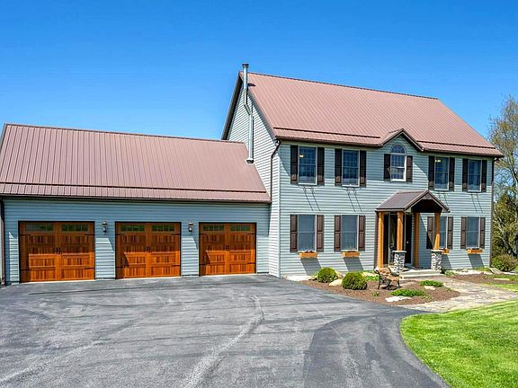 Views for miles on this 5.05 acre property with 4/5 BR Home, huge 3 car garage & shed. Main floor has office/BR with full bath, open kitchen/dinning, living room, laundry area, and bonus room for formal dining or bonus room. Main level boasts 10 foot ceilings, new modern kitchen with updated appliances, outside deck area off dinning and large foyer with 20 ft ceiling. Upstairs there are 4 BRs, with 2 full baths. The master Bedroom is huge with on-suite bath, tub and shower. Lower walk out level has wood burning stove and large recreation/living room. Utilities , extra fridge and storage on basement level. Central Air & Forced air propane heat. HOA pays for road maintenance and plowing. Open yard with plenty of space for gardening, or a horse? Call today for your private showing of the well maintained, updated traditional home!