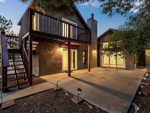 Set in the serene mountain community of Sandia Park, this charming 3-bedroom, 3-bath home offers 2,618 sq. ft. of comfortable living on 2.5 acres. Ideal for horse lovers, the property includes a barn and open space to roam. The inviting living and dining area features a gas log fireplace with a stone surround and wet bar--perfect for gatherings. A bright family room and versatile flex spaces provide options for an office, gym, or creative studio. The kitchen boasts abundant cabinet and counter space, an island, pantry and stainless-steel appliances including refrigerator. The primary suite includes a walk-in closet, dual vanities and relaxing jetted tub. Enjoy expansive views from the deck and plenty of storage in the 3-car garage. Peaceful country living close to everyday conveniences.
