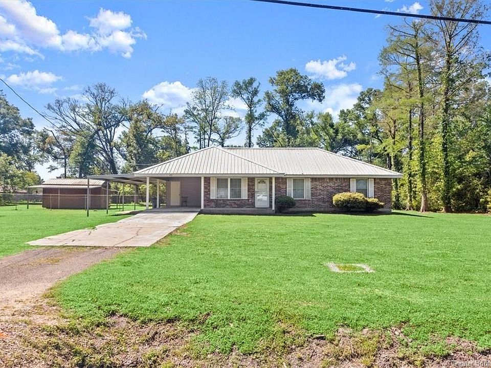 This precious home nestled in the heart of Moss Bluff is move-in ready and just waiting for the perfect owners. Sitting on almost 1 acre of land in the highly desirable Moss Bluff/Gillis school district, this home is ready for you. This traditional style brick home features 3 bedrooms and 2 full bathrooms, kitchen with an eat in breakfast area, spacious living room and a large laundry room. The master bath has been fitted with a handicap accessible bathtub/shower that has a door and bench. With a 2 car carport, a front porch as well as a back patio, this means plenty of room for sitting outside and enjoying nature or waving at the neighbors that drive by. Bonus space included is a 200 sq ft storage building in the backyard that can store all of your lawn equipment, tools, bikes and whatever else your heart desires. Outside building also has 2 covered lean-to areas totaling over 400 sq ft. That's over 600 sq feet of storage for your outdoor equipment! This home is a must see!