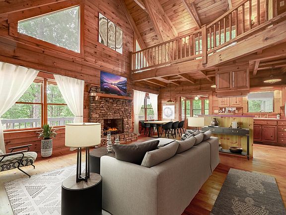 Discover the Ultimate Mountain Living Experience! This remarkable property offers panoramic mountain views that will leave you in awe. Beyond the scenery, it also presents the potential for a smart investment or the perfect in-law suite. Imagine waking up each day to the picturesque mountain landscape right outside your door. This exceptional property features a spacious great room with rock fireplace that seamlessly flows into the kitchen and dining area. On the main floor, you'll find a cozy bedroom and a convenient bathroom. Upstairs there is a large loft, bedroom and updated bath. When you're not admiring the views from the front porch, you can bask in the sunlight and appreciate the scenery from the sunroom. Plus, there's no shortage of storage space to keep all your mountain essentials organized. As you explore further down the hall, you'll discover a complete apartment that could serve as a comfortable in-law suite, host guests, or even generate rental income. What's more, there's an oversized two-car garage that's perfect for storing your mountain gear and additional belongings.