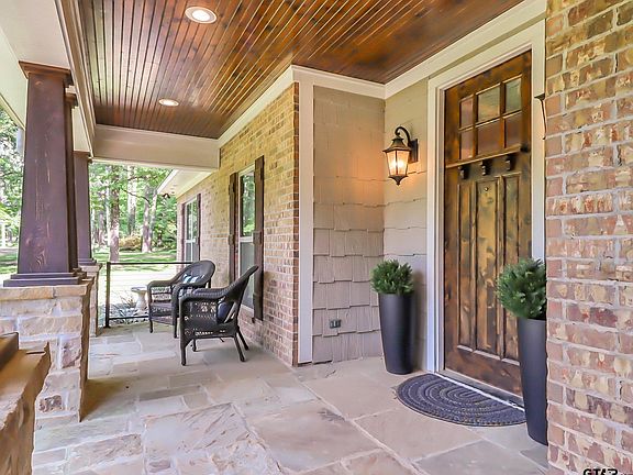 Welcome to 491 Hall Dr – a custom 3,625 sq ft masterpiece on 1.686 acres in sought-after HALLSVILLE ISD. Perfectly located between LONGVIEW and HALLSVILLE with quick HWY 80 access. Curb appeal stuns with FLAGSTONE ACCENTS, NATURAL CEDAR, CABLE RAILINGS, WALNUT-STAINED CEILINGS, and SLATE-INSPIRED SHINGLES. Step inside to SOARING CEILINGS and a versatile flex room ideal for an office, dining, playroom, or guest space. The open-concept living room features a STACKED-MARBLE GAS FIREPLACE with cedar mantle, built-ins, and large windows with backyard views. The chef’s kitchen boasts a MASSIVE ISLAND with hidden storage, granite counters, coffee bar, walk-in pantry, “Sonic-style” ice maker, double convection ovens, 5-burner gas cooktop, pull-out microwave drawer, and black stainless appliances. A split-bedroom layout offers a PRIVATE PRIMARY SUITE with dual custom closets and a SPA-INSPIRED BATH featuring a soaking tub under a wood-stained ceiling and large tiled shower. Two guest bedrooms share a bath with separate vanities and walk-in closets. Extras include a laundry room with sink, guest bath with leather-finish counters, mud bench, wide doorways, and spray-foam insulation. Upstairs, you’ll find a media/game room plus bonus flex space that could easily be converted to a fourth bedroom. Outdoors, enjoy a COVERED PORCH with flagstone floor, stained ceiling, 220 plug for a hot tub, and Christmas light plugs under the eaves. Bonus DETACHED FLEX SPACE includes a half bath, sink, and counter—perfect for an office, studio, or client meetings. Outside city limits and no HOA. This MOVE-IN READY home is truly one-of-a-kind. Schedule your private showing today!