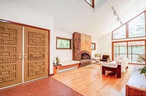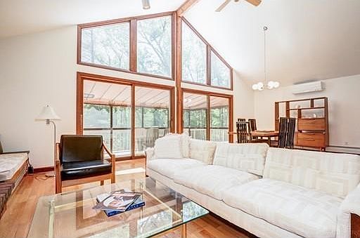 Beautiful property located on 6+ acres of land with Vermont like setting. Well maintained 4 bedroom, 3 bathroom multi-level home with open floor plan, cathedral ceilings and great natural light throughout. Newly painted interior. Updated eat-in kitchen with custom cabinets, corian counters, tile backsplash, vaulted ceiling and tile floor. Sundreched living room and dining room with floor to ceiling windows, cathedral ceilings, hardwood floors and open hearth fireplace. Wrap around deck with screened in gazebo. Large Master Bedroom, cathedral ceiling, recessed lighting, walk-in closet and master bathroom. Three other bedrooms, wall to wall carpet and closets. Third floor loft area great for family room. Walk up attic with plenty of storage. Lower level has office, laundry room, storage room. All appliances including washer and dryer included. Two Car Garage with workshop area. Updated Roof and Exterior Painting. Central Air. Next to Mt Pisgah. Easy commute - close to major highways