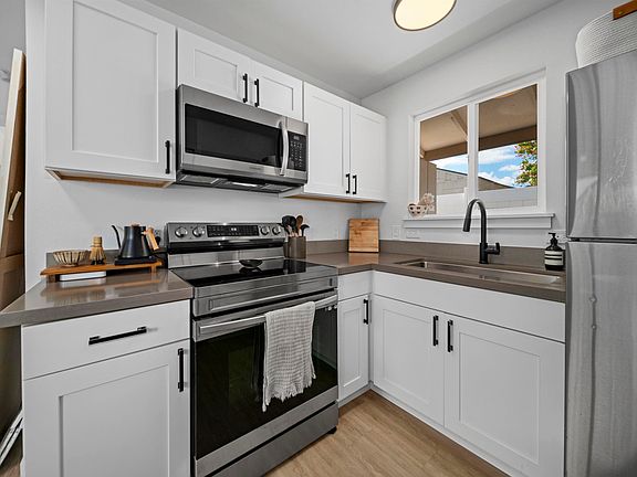 Stylish light fixturesBrand-new kitchenTranquil streetFresh flooring and paint