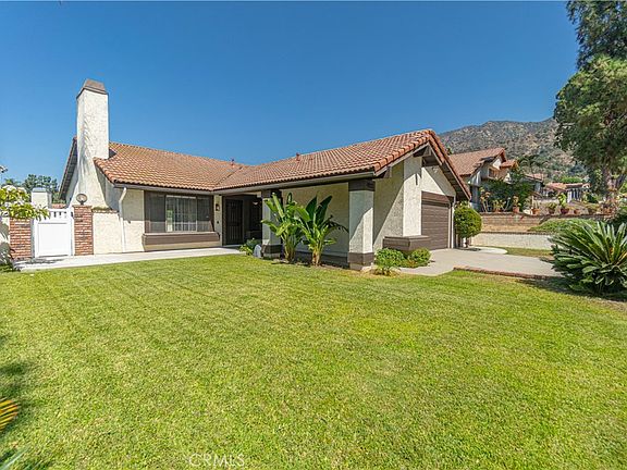 Beautiful contemporary single-story home with 50k in upgrades with mountain views located in a prime area along the foothills of Duarte. This home is perfect for your active, fun-loving lifestyle. Gorgeous tree-lined streets, inviting curb appeal with brick-lined hardscape, healthy front lawn and covered entryway. New custom wood front door features rustic style clavos and peep window. You can appreciate the open layout formal living and dining room with a toasty fireplace under a vaulted ceiling. The family room opens to the kitchen with granite counter tops, a breakfast bar, stainless steel appliances, two floating shelves, recessed lighting and a sliding glass door to the backyard. Extensive use of durable, attractive luxury water proof vinyl plank flooring in the main living areas. Relax in the primary suite with a double door entryway and a swanky 33k new fully remodeled en suite bathroom with designer-inspired finishes, extra large custom shower niche and double sinks. Both bathrooms are gorgeous and the hallway bathroom has a quartz vanity. The laundry area offers hookups for both electric and gas clothes dryers. More upgraded items include a Nest® thermostat, water filtration system, 6 dual pane windows, ceiling fans in all bedrooms, new 2k efficient whole house fan, newer furnace and AC compressor, 8k 200 amp electrical service, and an 60 amp EV charging circuit in the garage. The backyard is conducive for entertaining featuring a concrete patio, raised garden bed and block walls, where you can also enjoy the beautiful mountain and sunset views. We are conveniently located North of Royal Oaks Park and Bike Trail, The Rancho Duarte Golf Course and Encanto Park. Very commuter friendly near eateries, shopping and much more. Something for everyone!