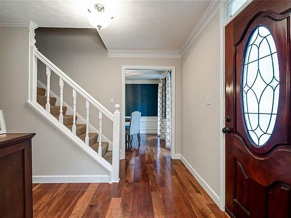 You do not want to miss this beautiful 4 bedroom, 2.5 bath home in Lees Crossing. Inviting foyer welcomes you into this amazing home with hardwood floors, separate living room & dining room, eat-in kitchen with stainless steel appliances, breakfast bar and view to spacious fireside family room with built-ins. Upper level offers large master suite w/spa-like bath with his/her sinks, separate tub/shower and walk-in closet. 3 additional bedrooms on the upper level. Outdoor living at it's finest! Huge deck overlooks private backyard w/firepit. Great swim/tennis community.