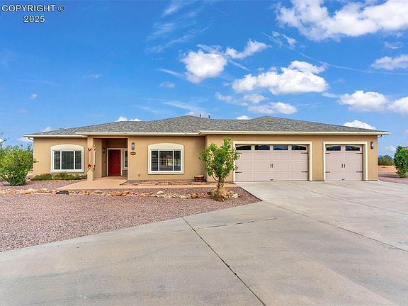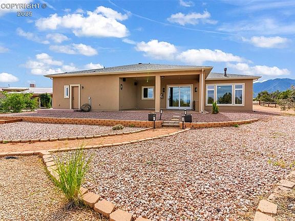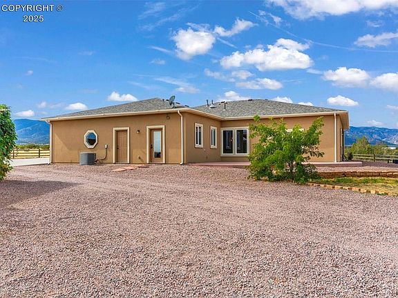 Gated Horse Property with stunning views and privacy on 35.20 acres. This great HORSE PROPERTY is one of a kind and ready to move in - both you and your Horses! Southwest Rancher features beautiful Trey Ceilings, Accent Lighting, oversized Windows to take in the Mountain Views, Gas Fireplaces, & more. 3 bedrooms & 2 bathrooms in the Main House, and 1 Bedroom/1 Bath in the Barn Apartment. The open floor plan is perfect for entertaining & your friends will be breathless from your views of the surrounding mountains including Pikes Peak. Enjoy a glass of Wine from the Kitchen Wine Fridge and cozy up to the Gas Fireplace in the Living Room. The gourmet Kitchen features a Pantry, Hickory Cabinets, Gas Stove, Granite Countertops, huge Breakfast Bar Island & Butler Pantry. The large Master Bedroom features a see through Fireplace to the 5 piece Master Bath & has large oversized Windows looking out to the Treed terrain. The Master Bath is generous sized with a huge walk-in closet, soaking tub, split double Vanity, & tiled shower. The exterior Horse Barn features a 1 bedroom/ 1 bathroom apartment with Kitchenette, inside RV Parking with full hook-ups including sewer, & 2 inside Horse Stalls w/access to fenced exercise yard, additional stall, hay storage & Workshop. The 35+ acre flat Parcel includes a private Shooting Range, loads of parking, standard Barrel Arena, & potential site for addition barn. Located 10 minutes from all the amenities in Florence, this property also has easy access to Pueblo & Colorado Springs. Secom & Starlink onsite.