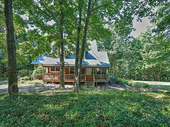 Lovely 3 bedroom, 2.5 bath mountain house with basement on 5.5 acres located only 40 minutes from downtown Greenville and Spartanburg, and less than 10 minutes from downtown Landrum and Tryon. Only 25 minutes to the new Tryon International Equestrian Center. Cypress-sided Cape Cod with green metal roof, welcoming front porch, and over 5 acres of the prettiest land in the Upstatee. Green lawn, wooded trails, and babbling brook all in your own backyard, not to mention the breathtaking views of Hogback Mountain. The main level of the home features a welcoming front porch that leads into a bright sunroom. French doors open into the dining room and living room with gleaming freshly finished pine floors. The living room features a wonderful fireplace flanked by two windows with a view to perfection. Half bath and exit to back deck are also off the living room. Kitchen features granite counters and stainless appliances, as well as dual pantries. Spacious master on main has double walk-in closets and updated master bath with dual vanities. Upstairs are two large additional bedrooms, each with its own sitting area and double closets, and large full bath. Huge basement contains a private wood-paneled office/study, a large laundry and utility room (washer and dryer stay), and additional storage in the unfinished area. Unfinished area has been roughed in for an additional bathroom. Detached double garage with unfinished area upstairs for additional storage. Front porch was added and septic tank replaced in 2015.