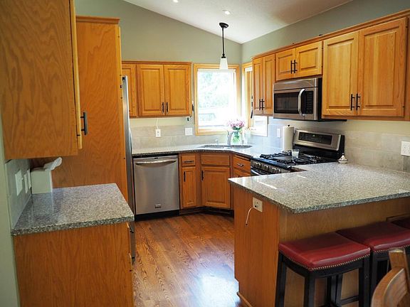 Built by the current owners in 1994 & lovingly maintained and modernized is what you sense both inside and out in this wonderful 3 level. Updated kitchen boasts granite counters with tile backsplash and skylight; updated main bath has quartz vanity and tiled tub surround. Owners' Suite is where this one really shines. Note size of this bedroom along with tiled walk-in shower and huge closet with heated floor and skylight. Two other bedrooms on the upper level work great for kids, office space, or anything else you want close. Downstairs you will find new carpet in the family room, another bedroom & bath with tiled walk-in shower, a workshop, laundry space, and quite of bit of storage. Outside is a beautifully landscaped yard with a large deck. Miles of trails with access at the end of the street, all sorts of shopping nearby, YMCA only a stone's throw away, and kids walk to school until high school. Come see one of the best kept homes in all of the SD12!!