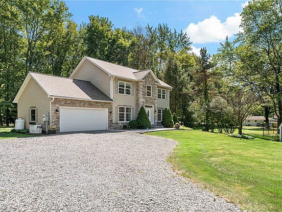 Welcome to your dream retreat at 491 South Eberhart Road #A! This gorgeous 3-bedroom, 2.5-bath home is 2,184 sq feet & sits back from the road, down a long driveway, on a lush 0.82-acre lot, offering serene privacy & a park-like setting! Step inside & be greeted by an open & bright layout w/ updated light fixtures throughout. This stone & brick beauty boasts LOTS of rooms, perfect for spreading out & making your own. The spacious living areas flow seamlessly, creating an inviting atmosphere for relaxing or entertaining. The kitchen is an entertainer's delight w/Huge Island, & it flows effortlessly to the outdoor patio. Summer barbecues are easy w/ the built-in grill & cozying up by the firepit as you enjoy your private, tree-lined backyard. The walk-thru trellis adds a charming touch to this picturesque outdoor space. Rest easy knowing you have a generator for the unexpected weather. The additional giant detached 1-car garage provides ample storage space. Remodeled basement- WARRANTY!