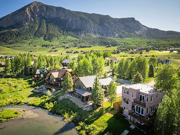 Nestled above a sweeping bend in the Slate River, in the serene shadow of iconic 12,168’ Crested Butte, this extraordinary home offers a front-row seat to some of Colorado’s most awe-inspiring natural beauty. With major upgrades since 2023, it blends timeless exposed-wood charm with modern luxury and panoramic mountain views that stretch from Whetstone to Gothic. Enjoy the ever-changing beauty of protected riverfront wilderness right from your expansive stone deck with hot tub, firepit, and both open-sky and roof-covered seating areas. Wildlife sightings are frequent, sunsets are unforgettable, and night skies are ablaze with stars. Inside, massive windows bring the outside in, illuminating a spacious open-concept kitchen, dining, and living area anchored by a floor-to-ceiling fireplace. The craftsmanship shines with Douglas fir beams and ceilings, cherry floors, and an all-new gourmet chef’s kitchen featuring Wolf/Cove appliances, granite countertops, a large serving island, and walk-in pantry. The main level includes two bedrooms, each with its own bathroom featuring heated floors. Upstairs, the luxurious primary suite is a true sanctuary with cathedral ceilings, private balcony, gas stove, dual-vanity bath with steam shower and hydrotherapy tub, bidet-toilet, heated floors, and walk-in closet. A fourth bedroom or office and a large ADU-style bonus room complete the upper level. The bonus room includes a kitchenette, bath, and private entrance offering ideal flexibility for guests, rental income, or multigenerational living. Located just 6 minutes from historic Crested Butte and 12 minutes to world-class skiing, you can bike or walk into town on a dedicated path or paddle straight home via the Slate River. A true legacy property set in National Geographic-level scenery.