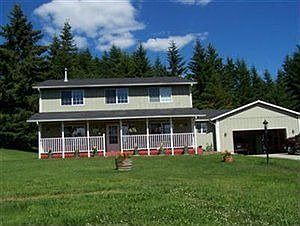Wonderful home on just over 5 acres. The perfect home for those in need of lots of square footage & has horses or other animals. Seller has taken very good care of this home. Lot is private. The area around the home is clear of fir trees for ease in maintenance & sunshine. Beautiful sunsets too. Outbuildings for extra storage, 2 car shop, plus attached garage. Driveway is paved from the private road to the house. Addn'l wood shed & small hay shed. Covered area for horses.