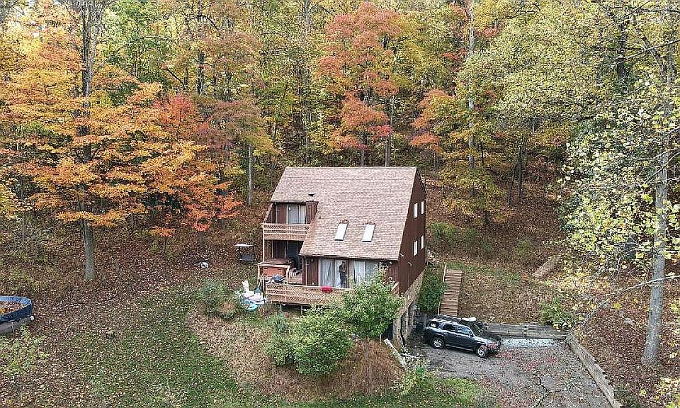 Private and secluded on 3.6 acres, yet close to Rt. 22. This 4br 2 ba two story features vaulted ceiling, skylites, hardwood floors, wood burner in LR and much more. Relax on one of the decks or in the hot tub or sauna. Den on main floor could be 4th bedroom. There is an 11x7 office/den area on the lower level too. Basement is part-finished as an exercise area. The garage is oversized with lots of room for storage. Outdoor storage shed as well.There is a path to a private walking trail and camping area.Property borders wildlife preserve+ Murrysville park.