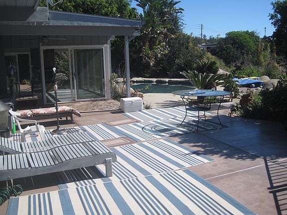 Mid-century modern 5-bedroom 2-bath 2400sf wood-framed house with a resort-like setting and a glass-enclosed dining room that overlooks a rock bordered pool, spa and canyon. A large concrete wrap-around deck, outdoor lights and speakers, and a fenced yard complement the southwestern style landscaping. The house has an attached two-car garage and includes two gas fireplaces, gas-forced air conditioning and heat, two skylights, and an open flow floor plan that is ideal for entertaining. The outside 23000 square foot sloped lot overlooks a canyon and includes an updated irrigation system, a brick island for a BBQ, a deck that is ideal for outdoor activities, koi and goldfish ponds, and an in-ground spa, pool, and pool waterfall. The house is within walking distance to San Diego State University and provides a quick and easy access to all major highways. Upgraded kitchen and master bath in 2015. Stained and sealed concrete floors make the house seem even more resort like. One of the best backyards in all of San Diego with perfect privacy and amazing landscaping around a huge pool. New energy efficient windows. Neighborhood Description Established and settled area of homes built primarily in the late 1950's to the middle 1960's. Many upgraded. A mix of older established residents, middle aged residents and young professionals.