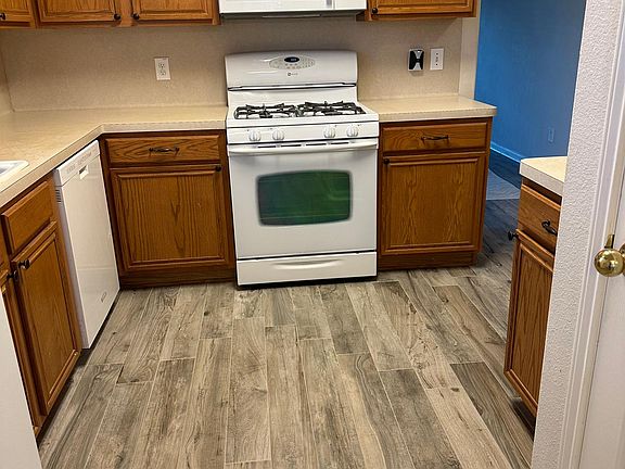 Ceiling fans, central AC, and heat. High ceilings. Convenient laundry room off kitchen with electric and gas hookups. Gas range, over-the-range microwave, dishwasher, and disposal included.