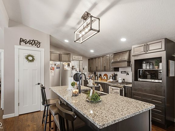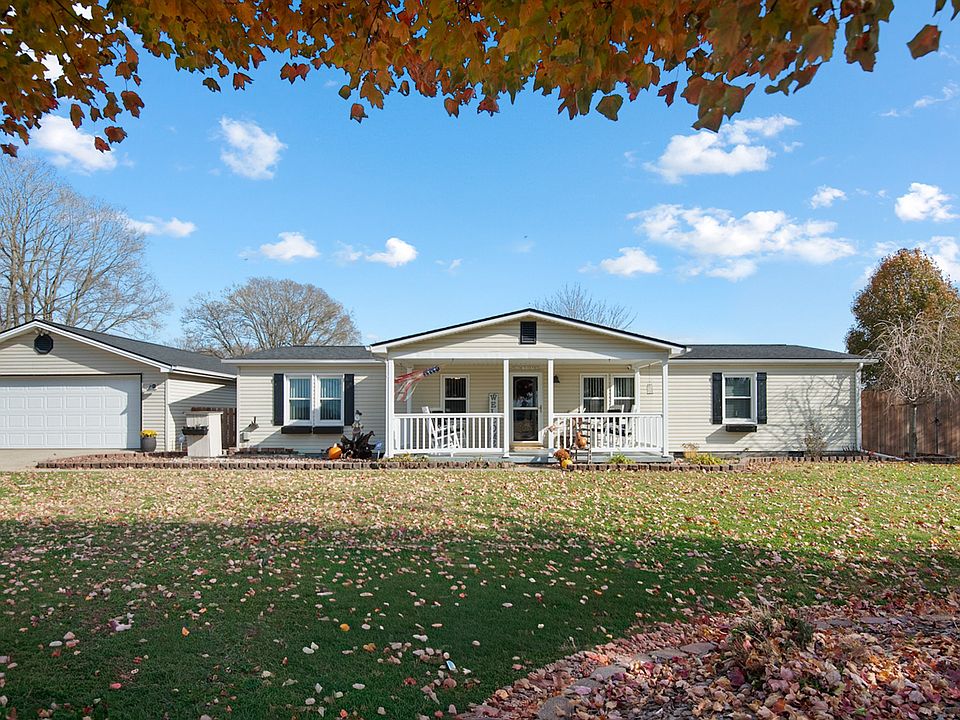 You have to see it to believe it-nearly every inch of this home has been thoughtfully updated with quality and care, from the Pergo TimberCraft waterproof laminate flooring to the efficient wood-burning stove. Located just outside city limits, this property sits on nearly one acre, offering the peaceful feel of the country with the convenience of being close to town. Inside, the spacious living area flows into an open-concept kitchen featuring custom kitchen cabinets, a granite island, pantry closet, and dedicated dining space. A bright sunroom overlooks the large, privacy-fenced yard and concrete patio-perfect for relaxing or entertaining. The 2432 detached garage provides excellent storage, workshop space, or parking. Be sure to ask for the full list of updates-Roof (2022), Furnace (2021), Tankless Water Heater with PEX Lines (2021), Flooring (2022), Outside Generator Hookup (2024), Farm Fence (2023), Garage Door Opener (2023), Bathrooms updated including granite vanities (2021), and more!