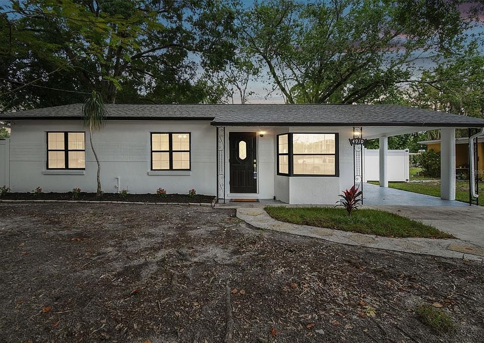 Come and take a look at this recently renovated home, where you'll find a tastefully designed interior that uses bold color contrasts. The living room features a cozy fireplace, creating a warm, relaxing atmosphere. The residence includes three comfortable bedrooms and two bathrooms. The house has a NEW ROOF, NEWER AIR CONDITIONING, NEW STAINLESS STEEL APPLIANCES, PORCELAIN FLOORS THROUGHOUT, NEW LIGHT FIXTURES, NEW FAUCETS, AND A NEW VINYL FENCE, ALL IN 2024. The kitchen is well-equipped and features a modern island with an attractive waterfall-style countertop that blends functionality with aesthetic appeal. The interior is filled with natural light pouring in through large windows, enhancing the overall ambiance of the living spaces. The bathrooms are a luxurious experience, with glass-enclosed showers, stylish tilework, and elegant gold finishes. The backyard is spacious and offers plenty of room for outdoor activities, with a tree providing shade and privacy. The home is located in the Wellswood neighborhood, offering easy access to many nearby amenities. Wellswood Park is an incredible neighborhood in Tampa Bay that provides fantastic access to everything the city has — from the International Mall and the airport to Gulf beaches, surrounded by amazing restaurants, the Bucs stadium, the Tampa Zoo, Busch Gardens, and every new development in the city of Tampa.