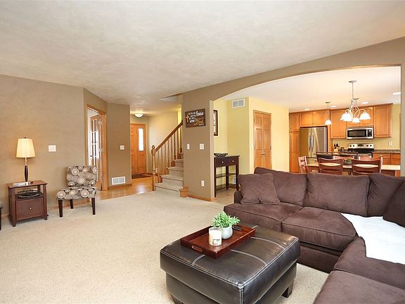 This nicely appointed 2 story home is located in an established neighborhood with winding streets and distinctively unique homes. Picture perfect and truly move-in ready this home offers enough space for everyone! An inviting entry greets you with wood flooring and opens to an office with french doors. Just beyond the entry is the expansive sun drench living room anchored by an attractive gas fireplace. This bright space is open to the eat-in kitchen allowing for cooking and conversation. The fully applianced kitchen boasts maple cabinets, tile floors and granite counter tops. Patio doors flank the dinette and look out on to patio and the neatly manicured lawn. Tucked behind the kitchen is the back entry with lockers, separate laundry room and a convenient half bath. The upper level is comprised of four generously sized bedrooms and a common full bath. The oversized master suite includes double closets and a private master bath with dual vanity. Need more space? The lower level is finished with a HUGE family room complete with built in speaker system. Additional features include: 3.5 Car Garage, stub for 3rd bath, sprinkler system and much more. Buy in confidence this home comes pre-inspected and offers a 1 year HMS Home Warranty.