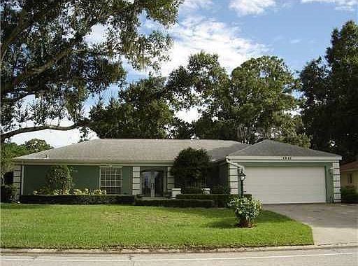 Updated classic Country Club home on a private park-like setting with an enormous lanai and eat-in-kitchen. Home has been tastefully decorated and features granite counters, wood cabinets, wood floors, pedestal sinks, crown molding and many other designer touches. Wonderful floor plan , very open with lots of charm. Huge private backyard with lush landscaping. Perfect for a family with pets as all you have to do is fence in the sides. Convenient location to shopping, restaurants and only a few