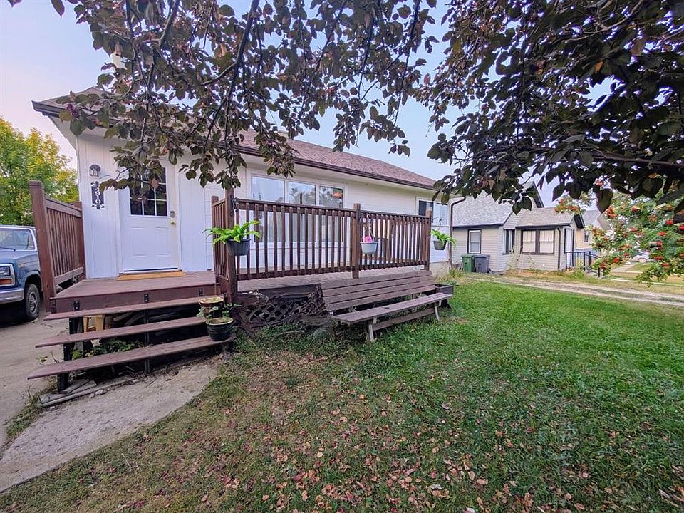 OPEN HOUSE Friday, Oct. 10, 4-6 p.m. FIRST TIME HOME BUYERS or PERFECT FOR THE SIGNLE GUY WHO WANTS TO TINKER IN A GARAGE: check out this Sweet cottage style bungalow in the heart of family oriented Rimbey . . . plenty of charm and tons of potential to make this property your forever home. Situated on a large lot with a single detached garage and plenty of space for dogs and kids to play in the backyard. Large front deck facing south . . . perfect place to start your morning with a cup of coffee on this very mature quiet street with your own beautiful Chokecherry tree. Inside you will find lots of updates over the last few years PLUS NEW WINDOWS UPSTAIRS (some were already replaced in 2015) just installed! Main floor kitchen and living room is very bright and open. Lots of space for the family to gather whether watching movies or entertaining guests. Lovely newer vinyl flooring, fresh paint , new backsplash, epoxy countertops, oak cabinets painted grey and newer appliances. Two bedrooms upstairs plus family bathroom also with updates including porcelain tile and new toilet. Downstairs has a large rec room with wood burning fireplace for the chilly winter nights. So much potential in this basement for growing families! Seller is leaving flooring and other supplies for the handyman who wants to finish up the last few jobs! Plus 1/2 bath downstairs is functional! This home has lots of extras including AIR CONDITIONING, hardy-board siding, new electrical panel in 2023, shingles 2015, hot water tank in 2019, Blower motor and furnace maintenance done in 2025. Perfect home for young couples looking to start a family, investors or a couple wanting to retire in a lovely smaller town. . . you will want to check this home out. Close to all amenities, swimming pool, skate park, playground, schools and shopping . . .you won't regret it!