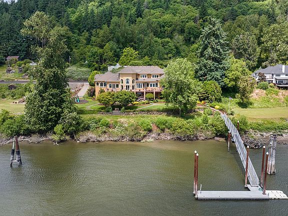 Welcome to paradise on the Columbia River! This exquisite property in Camas offers an unparalleled living experience on a sprawling 2.34-acre estate. Nestled amidst breathtaking natural beauty, this custom home boasts meticulous craftsmanship and unrivaled attention to detail. Upon entering the home, you'll be greeted by soaring high ceilings creating an atmosphere of grandeur and elegance. The focal point of the home is the stunning two-story high great room, where an abundance of natural light cascades through a wall of windows, framing panoramic views of the Columbia River. The gourmet kitchen is a culinary enthusiast's dream, featuring top-of-the-line appliances, custom cabinetry, and a spacious island perfect for entertaining guests. Adjacent to the kitchen, a breakfast nook offers a serene spot to start your day, surrounded by tranquil views. The expansive master suite is a private sanctuary, complete with a luxurious spa-like ensuite bathroom, featuring a jetted tub, a walk-in shower, and dual vanities. This exceptional property boasts an array of additional amenities designed to enhance your lifestyle. Discover a state-of-the-art home theater for an immersive cinematic experience, a temperature-controlled wine cellar to house your prized collection, a dedicated gym space, and a home office for those who appreciate the convenience of working from home. Embrace waterfront living with a private dock for launching your boating, fishing, or kayaking adventures, conveniently located across from sandy Ackerman Island. Green thumbs will rejoice at the sight of a greenhouse and gardening beds ready for cultivating your own vibrant garden. Perfect for entertaining guests, this spacious home boasts multiple conveniently located wet bars with under counter refrigerators. Last but not least, every bedroom in this home is accompanied by its own ensuite bathroom. Listing agent (Leslie Simpson) is related to Sellers.