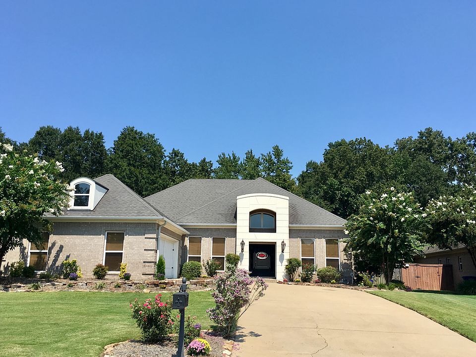 Beautiful custom built Luke Porter home in Nottingham subdivision. House backs up to green space, giving it a private, peaceful feel. Enjoying sitting on the covered porch or cozy sunroom and experiencing nature in the woods behind you. The inside boasts beautiful arches and high ceilings with a spacious open floor plan. This 2720 sq ft home has 4 bedrooms, 3 full baths, surround sound in ceiling, security system, laundry room with sink and built-ins, and custom cabinets in the garage. Fully fenced flat backyard with covered porch and sprinkler system.