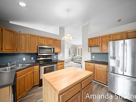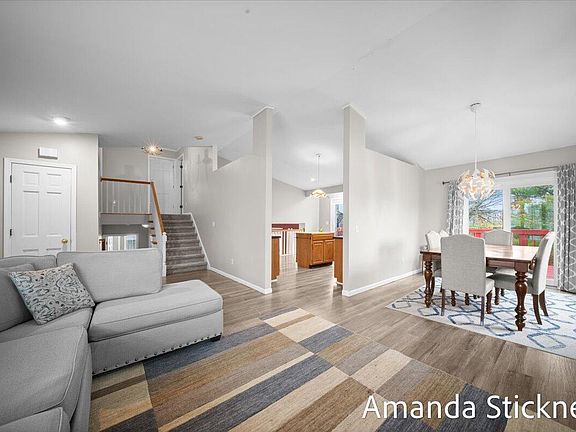 Welcome to this well-maintained tri-level home in Old Farm Estates featuring 3 spacious bedrooms, 3 bathrooms, and over 1,800 sq ft of finished living space. The main level offers soaring cathedral ceilings, a bright living room, and a center island kitchen with stainless steel appliances and ample cabinet storage. Upstairs, the primary suite includes a walk-in closet and private bathroom, while the finished daylight lower level features a cozy stone fireplace, built-ins, and large windows for natural light. Enjoy the outdoors in your fully fenced backyard with dual decks, perfect for relaxing or entertaining. Additional highlights include main-level laundry, central air, and a 2-stall attached garage. Located just minutes from shopping, restaurants, parks, and Kentwood schools. This home blends comfort, function, and a convenient location—schedule your showing today!