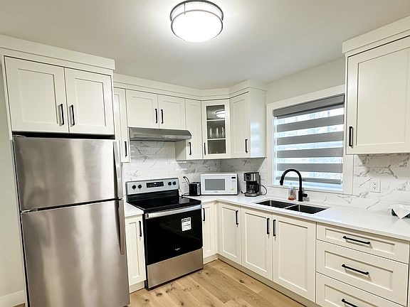 Brand new coach house in the heart of Delta with private entry. Features open-concept living with wide-plank floors, a bright kitchen with quartz counters, stainless steel appliances, and shaker cabinets, plus a cozy bedroom with full closet and modern roller blinds. Enjoy a contemporary 3-piece bath with glass shower, in-suite laundry. Water is included in rent, and the home offers a private paved driveway and fenced surroundings. Excellent location steps to FreshCo, London Drugs, Dollarama, Superior Fish Market, COBS Bread, Starbucks, and local dining. Close to RBC, Westland Insurance, Chevron, Ladner Centre, Trenant Park Square, schools, parks, transit, and quick access to Highway 17.
