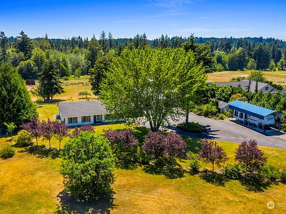 Popular East Olympia setting on 2.5 level, fenced, dry acreage, immaculate 3 bdrm rambler w-attached garage plus detached 2,160 sq ft garage shop w-1/2 bath & potential rm for additional living space w-3/4 bath. There are also several outbuildings & covered RV carport! The setting is lovely as the home sits back off the street offering privacy from road traffic. The floor plan features a spacious living rm w/wd st, country style kitchen w/breakfast nook & dining rm, energy efficient mini-spit, 2 full baths & 3 bdrms. Tumwater Schools & minutes from Olympia/Tumwater/Lacey! Bring your cars/boats/toys & livestock, rm for everything here. 2000 5th wheel included.