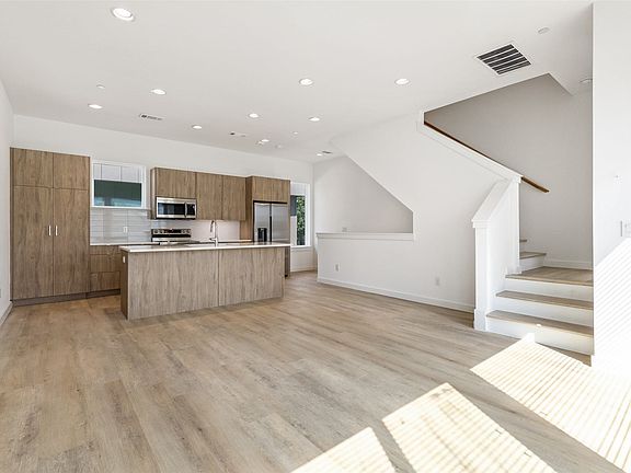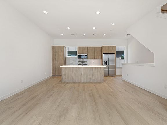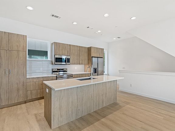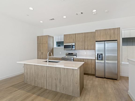 Stunning modern townhomes. First floor attached garage to formal entry. Ascend to the open living area with oversized windows, abundant light, open kitchen with quartz counters & stainless steel appliances, light oak color flooring, plus powder bath. There are two bedrooms upstairs with private baths. Additional amenities: hallway washer-dryer, LED lighting, keyless locks, programmable thermostats. Photos may be from a different unit of the same floorplan. 2025-09-04