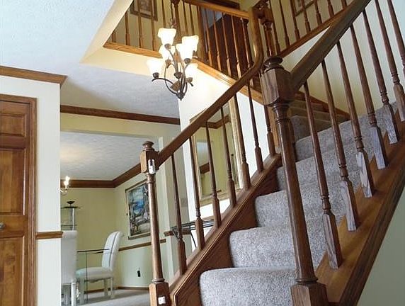 Custom-built, updated, open 4 bedroom, 2.2 bath, 2374 sq. ft. home with finished lower level (additional 660 sq. ft.). All complete with 19.5 x 17.5 ft. deck and 20.5 x 17.5 ft. patio on a private, wooded, fenced-in lot on a cul-de-sac minutes from Fox Den Golf Course, bike and hike trails, dog park, and Silver Springs Park. Home features inviting hardwood foyer, formal dining room with thick dental, crown molding and chair rail. Dreamy eat-in multi-cabinet kitchen with newer stainless steel appliances (5 burner stove, refrigerator, and dishwasher), and pantry overlooking semi-vaulted multi-windowed sun room, deck, and 19 x 17 family room with decorative wood burning fireplace and extended bay window to enjoy nature all year round. First floor office/sitting room with french doors, first floor laundry and half bath. Home includes large owner's suite with glamour bath (soak tub, shower, dual vanity, skylight, and over sized walk-in closet with lots of built-ins). 3 additional great sized bedrooms with equally great closet space and full bath in between. Approximately $55,000 in updates including roof, gutters, insulation, windows, lighting, hot water tank, carpet, paint, garage door, patio. Shows/feels like-new. Pristine and truly move-in ready!