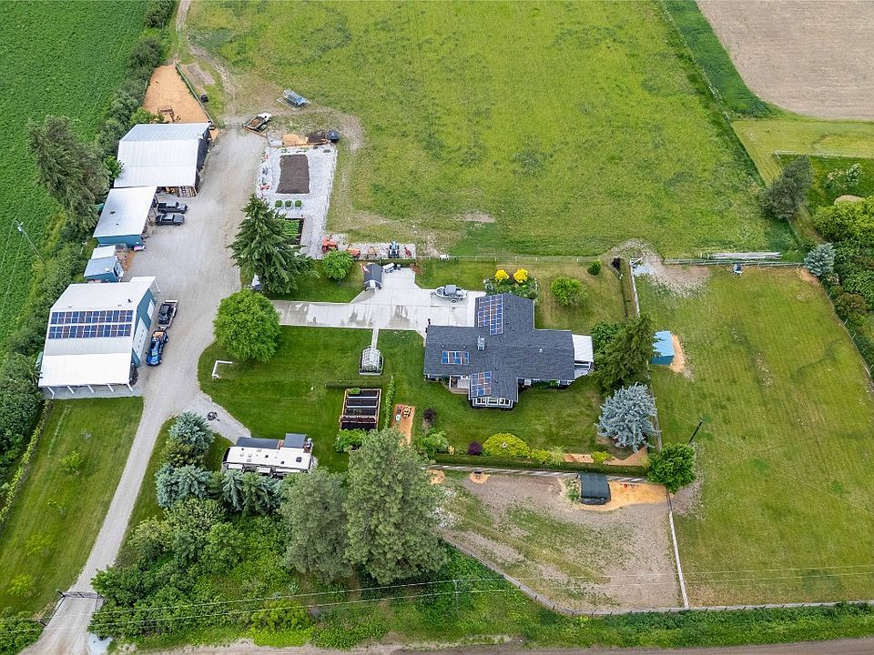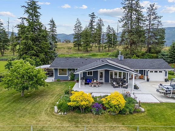 STUNNING PRIVATE 13 ACRE HORSE PROPERTY IN ARMSTRONG - You must watch the Video tour link to get a sense of the level of detail here. Solar, Geothermal, Fully fenced, landscaped, power gated and irrigated. Offering an elite location and setup. A newly renovated 3 bedroom 2 bathroom home, covered concrete patio & outdoor entertainment area, a large fully finished and heated shop (radiant gas heat and Blaze King forced air heater), walk in cooler, 40ft covered RV parking with plug in, Walk in meat cooler, heated and fully enclosed chicken coop with concrete floor, large pole barn, hay and equipment storage, massive gardens and including raised garden beds, fruit trees, 7 acre irrigated hay field, 2 heated water bowls fenced and cross fenced, treed park in the back, fully fenced, full irrigation system for the entire property 50 GPM well, solar on the house and the shop, electric car charging station, etc. Zoned for a second Residence. The home was recently renovated covered back patio addition, new roof to support the solar panels, geothermal heating and cooling, new windows, new gutters, new dream kitchen, large primary bedroom with a spa like ensuite and walkout to the salt water hot tub, concrete driveway, complete electrical upgrade throughout the property. The entire home offers incredible views of your property and miles down the valley. Located minutes to downtown Armstrong and Vernon. Contact Russ for a complete list of features way more here than meets the eye!