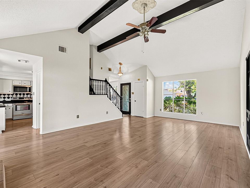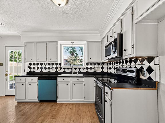 High ceilingNew flooringThree bedroomsNew microwave and dishwasherTextures and corners
