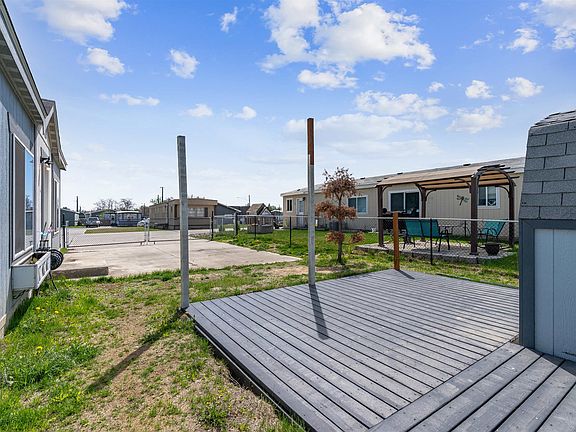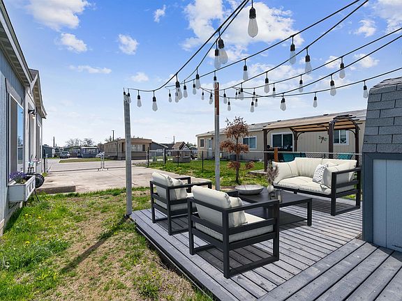 Don't miss out on this rare, newer manufactured home! Enjoy the open concept kitchen & living area that is airy & bright! With an informal dining area & breakfast bar, it makes a great space for weekend brunches or family gatherings. Tons of natural light throughout with a functional layout. The laundry area is off the kitchen in a separate mudroom & a walk-in pantry provides extra storage. The master suite features a spacious bathroom with a walk-in closet. Thoughtfully located on the opposite end of the home from the two guest bedrooms, offering privacy & a peaceful retreat. Step outside & enjoy the deck, perfect for hosting BBQs or taking in the sunshine! The front yard is fully-fenced with a gate to a 2-car driveway, making it convenient to haul in groceries to your door. For extra storage, look no further than the matching storage shed! Not a cash buyer? Ask your Realtor for financing details! With no age restrictions & allowance of 2 pets under 40 lbs, this could be your perfect home! Come see it today!