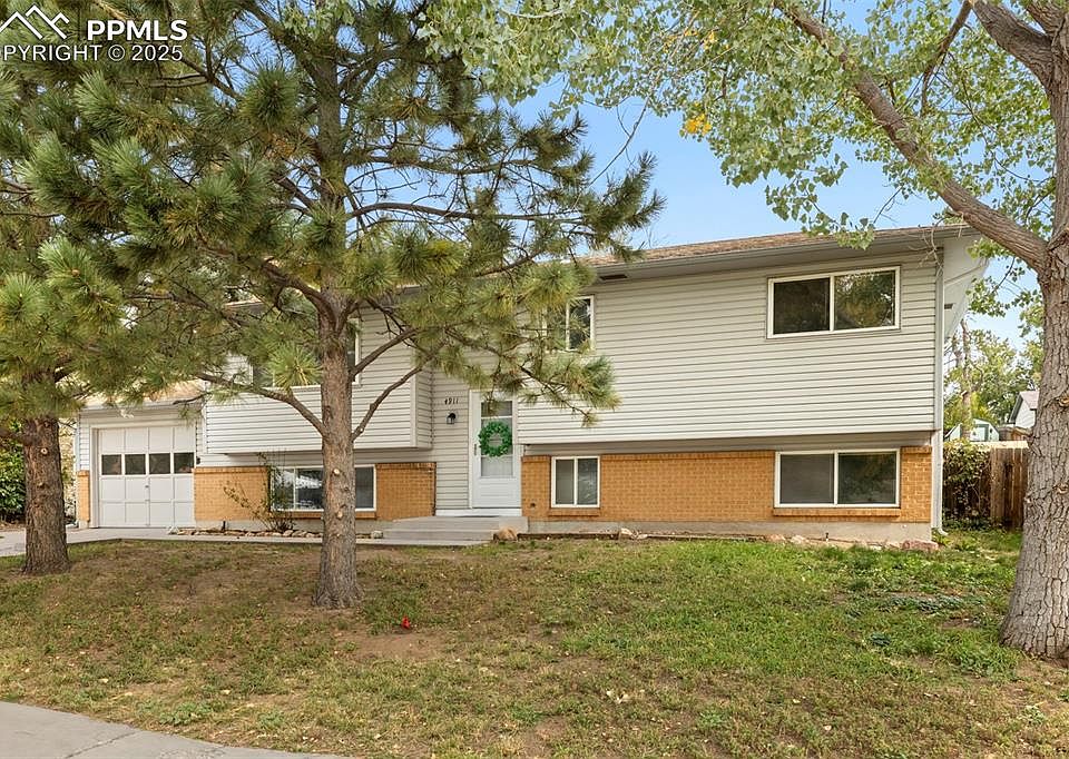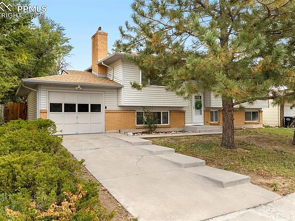 Explore this well maintained home located in the northeast side of Colorado Springs. This property with mature trees features five bedrooms and is conveniently close to essential amenities such as schools, parks, public transportation, and shopping centers, making it an ideal choice for a busy lifestyle. A new roof Class IV roof has been newly installed. Inside, the home opens into an inviting open concept that connects the living, dining, and kitchen areas. You'll find three bedrooms upstairs accompanied by a full bathroom. The lower level includes two additional bedrooms, a hallway bathroom, a family room with a wood burning fireplace, and a walk-out. It also includes a wet bar area. The garage includes the convenience of a service door that opens to the backyard. The expansive backyard is perfect for entertaining, equipped with a shed for storage and ample space for a barbecue or playset. Plus, enjoy partial mountain views from the front of the home. The City of Colorado Springs said they plan to repair the in sidewalk 2026.