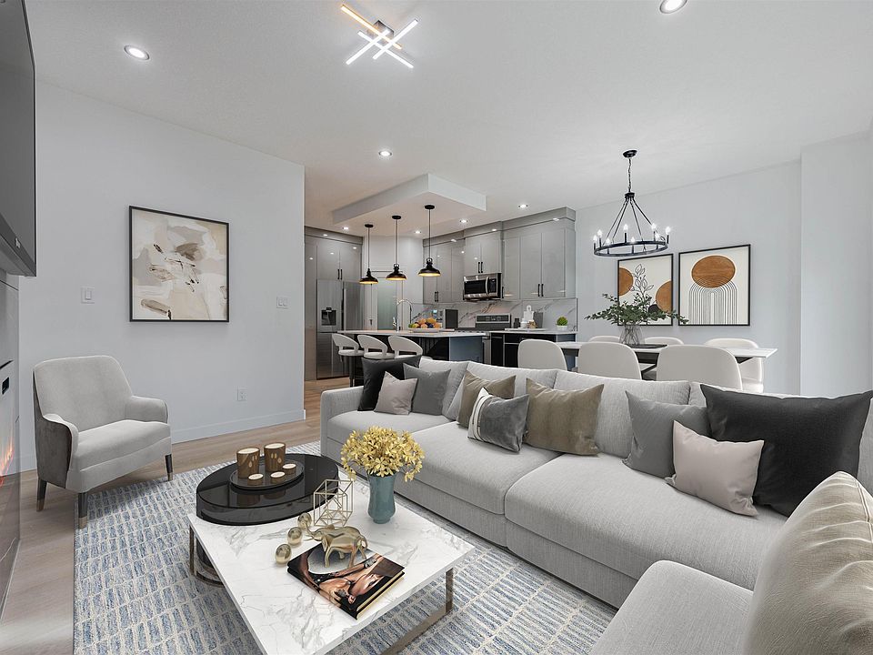 Welcome to this stunning brand-new custom duplex offering over 1,800 square feet of living space, perfectly situated on a corner lot in a quiet cul-de-sac. Thoughtfully designed for modern family living, this home features 4 spacious bedrooms and 3 full bathrooms, including a main floor three-piece bath with a walk-in shower. The main floor showcases 9-foot ceilings, a bright open layout, and a modern kitchen with a large island, walk-through pantry, and gas line for a future gas stove. Upstairs also features 9-foot ceilings, a bonus room, laundry, and two bedrooms with walk-in closets plus a beautiful primary suite with a luxurious 5-piece ensuite. The basement continues the 9-foot ceilings and has a side entrance ready for a future 2-bedroom legal suite. The single attached garage is insulated, oversized, and includes a floor drain for added convenience. A stylish, functional, and flexible home with incredible potential.
