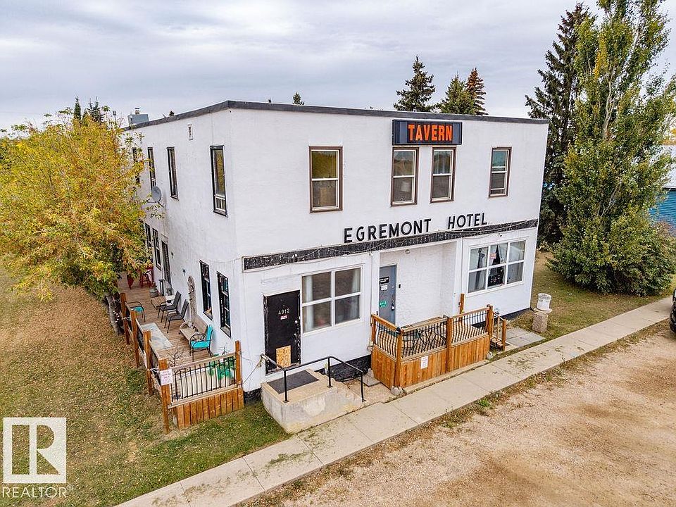 EGREMONT HOTEL RESTAURANT – ENDLESS POTENTIAL! Currently used as a residence, this well-maintained 2-storey property can easily be converted back into a bar, hotel, or restaurant. A community landmark, it’s ideally located near Redwater, Fort Saskatchewan, and the Industrial Heartland, with Edmonton just a short drive away. Pride of ownership is clear with upgrades including some windows, exterior paint, furnaces, air conditioning, newer hot water tank, plumbing, wiring, bathrooms, and basement improvements. The main floor previously featured food & beverage service with bar, dining areas, kitchen, pool table & musician stage. Upstairs offers a kitchen, living room, 2-bedroom suite, plus 4 additional bedrooms—perfect for guests, owners, or management. The spacious lot includes a Quonset-style garage. Land and building included—ideal for food & beverage, retail, business, or office use.