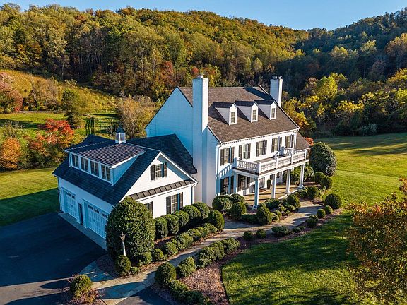 Located in the desirable Ragged Mountain neighborhood, this stately 6 bedroom residence blends timeless architecture with thoughtful, high-end updates. The home offers mountain and pastoral views and an ideal mix of elegance, comfort, and convenience—just minutes from Charlottesville. A gracious columned porch opens to light-filled interiors enhanced with designer lighting, custom wallpaper, window treatments, and freshly refinished spaces throughout. The main level features formal living and dining rooms, a paneled library, and a spacious family room anchored by a marble-surround fireplace. The gourmet kitchen includes premium appliances, stylish pendant lights, and a large island perfect for entertaining. A primary suite on the main level offers the ease of first-floor living, while a second primary suite upstairs enjoys mountain views and a spa-like bath. Additional bedrooms, a second-floor laundry, and a third-floor bonus space—ideal for a playroom, recreation area, or studio—complete the upper levels. The lower level offers a full floor of recreation with a movie theater, gym, and new hot tub. Exterior highlights include a freshly stained deck, repaved driveway, and updated lighting.