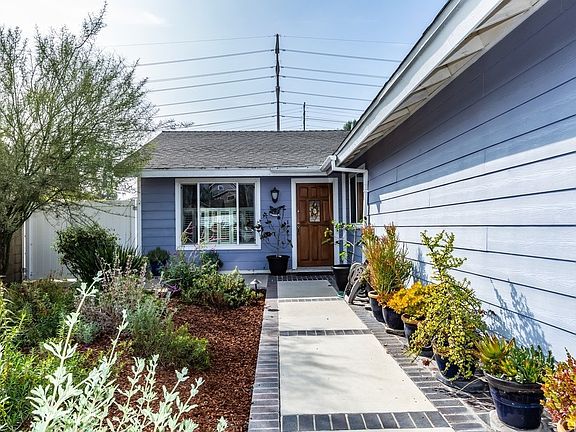 Adorable curb appeal in cul de sac location of El Camino Glen Community of Irvine. Single level detached home with 4 bedrooms, 2 baths, featuring 1,200 sqft living space on a very private Cul-de-sac 5,225 sqft lot. NO HOA dues or Mello Roos to pay here so your money goes farther. Many upgrades that any buyer would enjoy: Air Conditioning, Cherry Wood Floors in living areas and carpets in bedrooms, dual pane windows and slider to the back yard with covered patio to enjoy outside dining/entertaining. Living room feels very large and offers views to your back yard patio and gardens. The kitchen is efficient and also looks out to the yard space. The larger master bedroom has views of the lush yard and an en-suite bath with walk-in shower. Every bedroom has a ceiling fan to save on A/C. The over-sized garage allows for a work shop area and has loads of built-in storage. The front is landscaped with "drought tolerant" plants and in back bring out your green thumb and grow your own vegetables in the ready to grow planter boxes, there are also fruit trees growing too! One side yard could hold a greenhouse or would make a nice dog run area. This location is close to highly rated schools, near parks and biking trails offers easy commuter access. This home is ready to live in or make your personal changes as you like, great if starting out or looking for a smaller one level home. Come see this gem of a home and move in to start your new year!