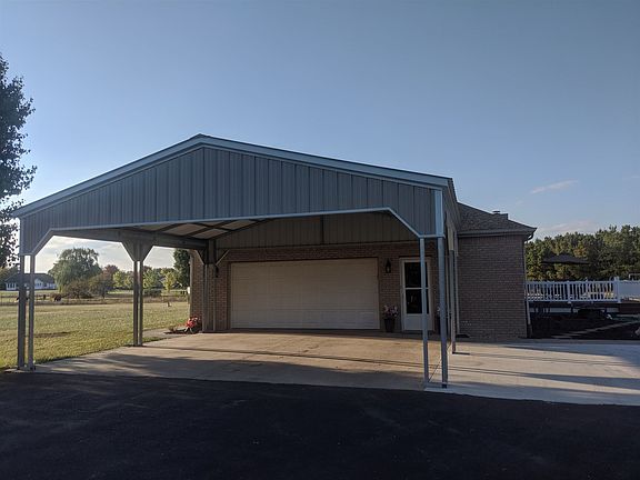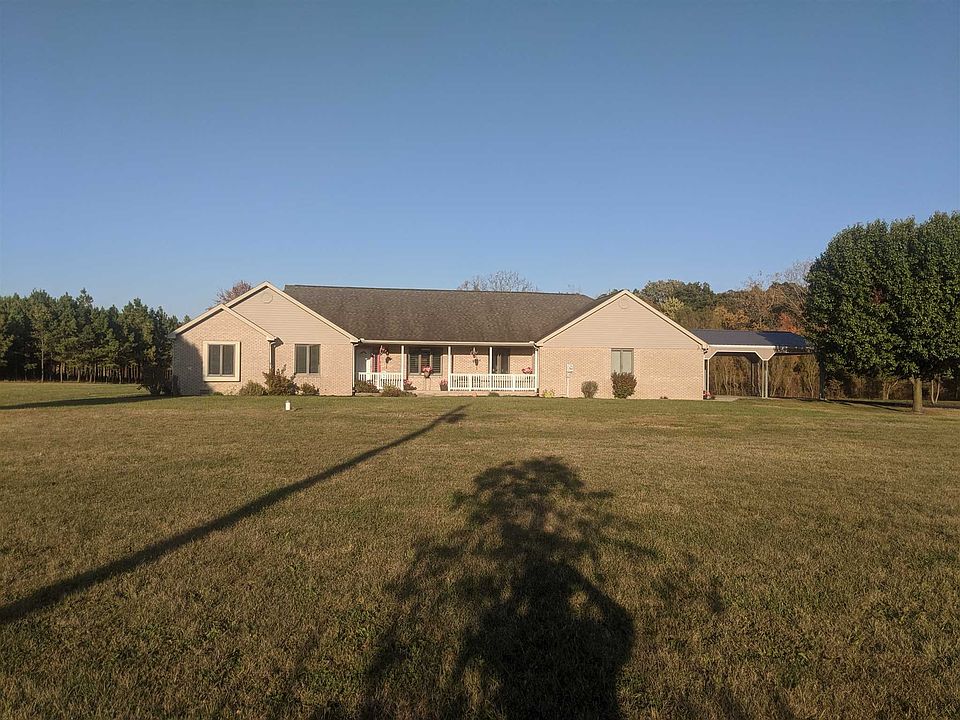 Hard to find 5 acre property with an awesome, all brick, ranch home. Located in the popular Wesdel School District but just 1/2 mile north of 332. This is an open concept home with large kitchen loaded with cabinets, stainless appliances, ceramic flooring and center work island. 25 X 20 great room has vaulted ceilings, wood burning fireplace, laminate flooring and lots of living space. There is a formal dining room adjoining the kitchen. You will enjoy great views of the pond and woods from the large deck accessed from the great room. There is quality all through this home, from the ceramic flooring and 6 panel, hardwood doors, to the solid surface counter tops and updated baths with walk in showers and jetted tub. The garage is large enough for a huge workshop and already has an extra counter top and sink. The seller has recently installed a 2.5 car deep, all steel carport to keep your vehicles out of the elements. There is also a brand new 20 X 16 steelbarn with concrete floor. This home has lots of storage space/closets, wide hallways, large rooms, and sits on a beautiful 5 acre, very private lot, with a pond.