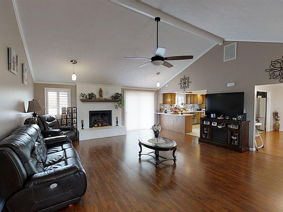 - Ceiling Fan(s), Breakfast Bar, Kitchen Island, Walk-In Closet(s), Vaulted Ceiling(s), Open Floorplan, Countertops-Solid Surf, Main Level Bedroom Suite, Stand Up Shower, Jet Tub