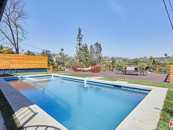The timeless essence of the Classic Mid-Century style flows throughout this stunning Residence, Circa 1950. The organic curves, natural materials, and clean lines adorn the entryway, sets the stage and invites you in to relax and take in the magnificent mountain views from anywhere in the open space, LR, DR, kitchen or the wrap around balcony comfortable for entertaining. The master suite is naturally decorated with views, opens out to balcony, and an en suite bathroom. This 2-story revival has it all, the floor plan seamless converts to the outdoor living. Pool, floating deck, balcony, patios, manicured lawns, and large lot with gardening area complete the experience of a true California outdoor living. Exquisite Add'l Features: Hand crafted solid walnut cabinetry, wood ceilings, exposed beams, island, solid oak floors, SS appliances, upscale lighting, cedar siding, brass hardware and cozy warm wood finishes. 2nd Floor, spacious and stylish FR, 2 BR & 2 BTHS & Laundry room.